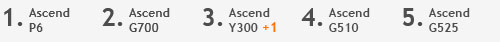 De Huawei Ascend P6 is nog altijd het populairste toestel van het merk dat iedereen anders uitspreekt. Hier is verder weinig veranderd. Wel zijn de Ascend W2 en P2 uit de top 5 verdwenen en de Ascend G525 en G510 zijn erbij gekomen.